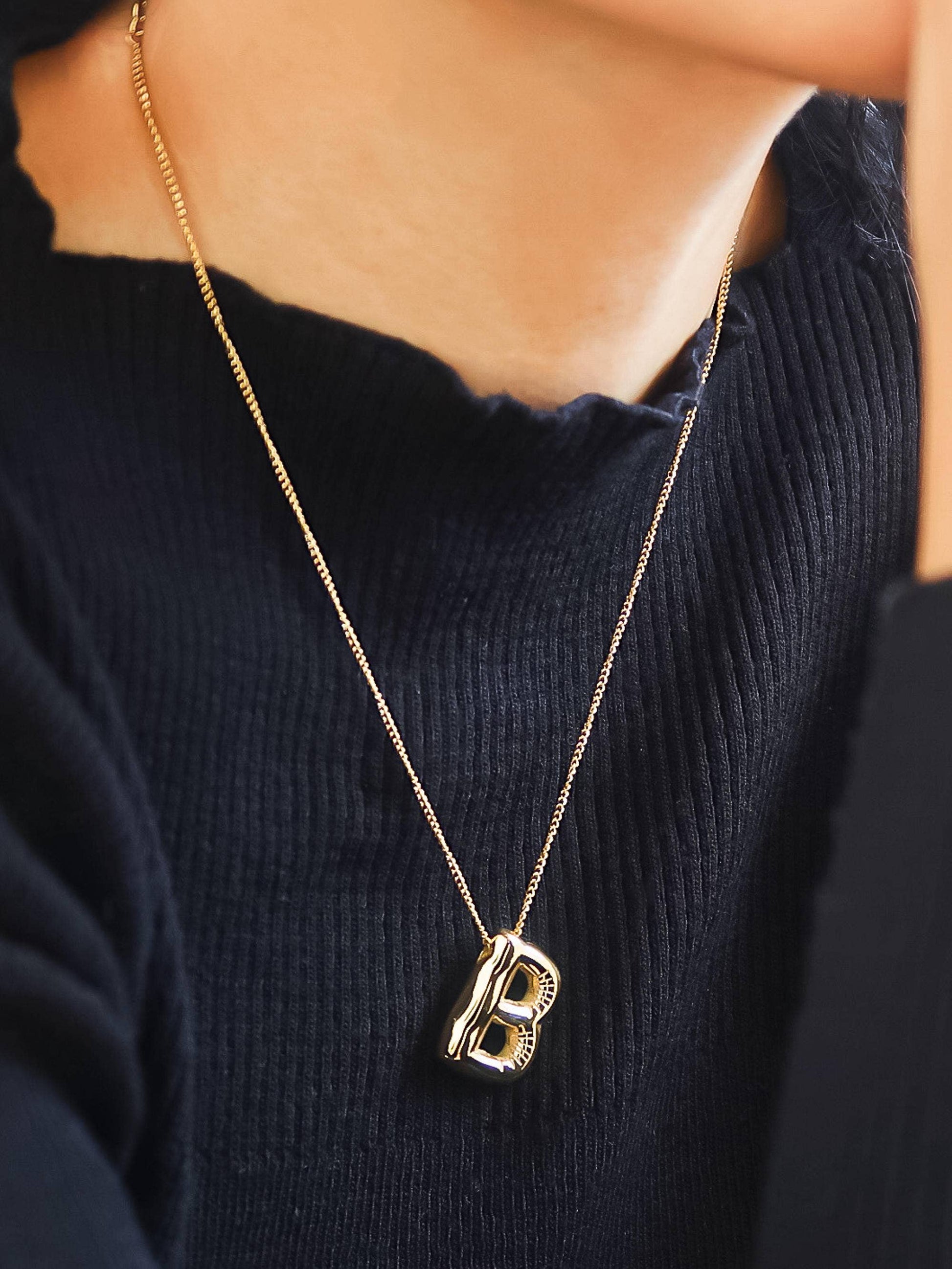 Hayes 18K Gold Non-Tarnish Balloon Alphabet Necklace: Yellow Gold / B