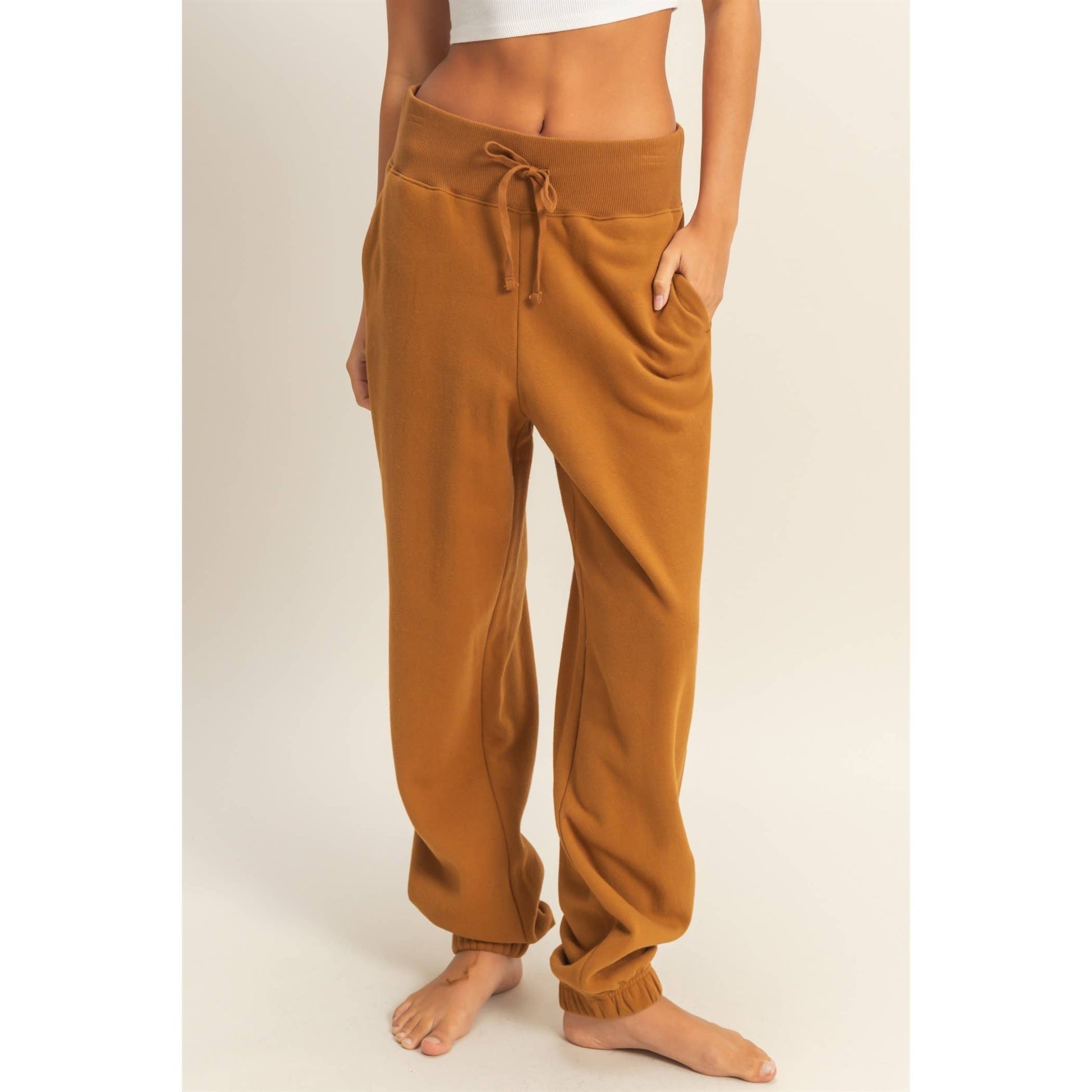 High-Waist Jogger Pants: PALE BROWN